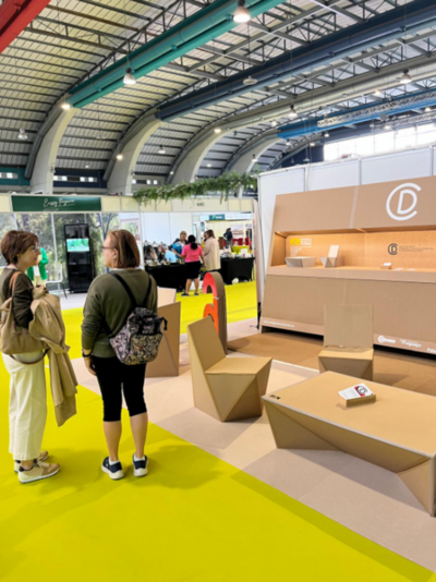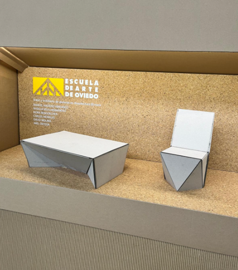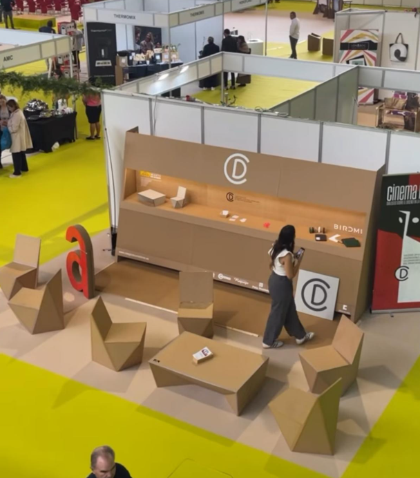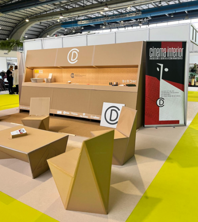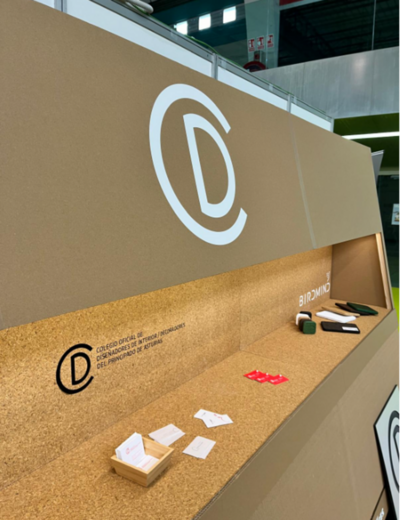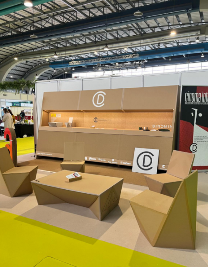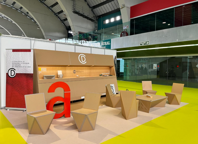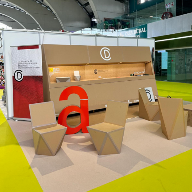Desde el CODIDAS participamos con un espacio propio diseñado en torno a materiales y soluciones sostenibles: un stand construido con tableros ecológicos cedidos por Birdmind y mobiliario de cartón creado por los alumnos de Arquitectura Efímera de la Escuela de Arte de Oviedo, a los que les agradecemos su colaboración.