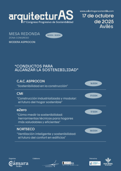 Además, el 17 de octubre tendrá lugar el Congreso ArquitecturAS, evento que constará de varias charlas sobre el sector programadas entre las 16:30 y las 18:00 h.